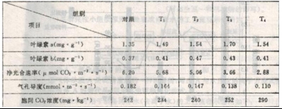 (3)據表分析,T3和T4組番茄葉片凈光合速率下降,可能的原因是細胞利用二氧化碳的能力減弱,其判斷依據是 。