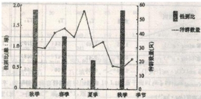 (2)由圖可知,社鼠的繁殖高峰大約在 季之間,秋季社鼠的死亡率雌 雄 (填“大于”、“等于”或“小于”)。