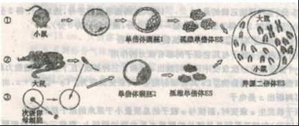 (1)圖中的單倍體囊胚1最可能是由小鼠的 發育而來,所采用的技術應為 技術,培養過程中使用的培養液處含有一些無機鹽和有機鹽外,還需添加微生素、激素、 等營養成分以及血清等物質。