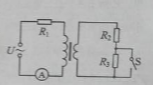 為理想交流電流表,U為正弦交流電壓源,輸出電壓的有效值恒定。當開關S斷開時,電流表的示數為I;當S閉合時,電流表的示數為4I。該變壓器原、副線圈匝數比為